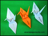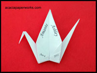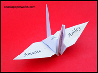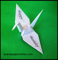 Personal Greeting Cranes may have from 1-3 words printed on the crane: