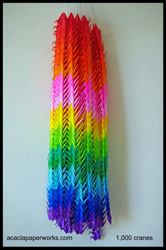 The 1,000 stitched hanging cranes can be hand delivered within the areas of Santa Barbara to San Diego & Los Angeles to Palm springs.